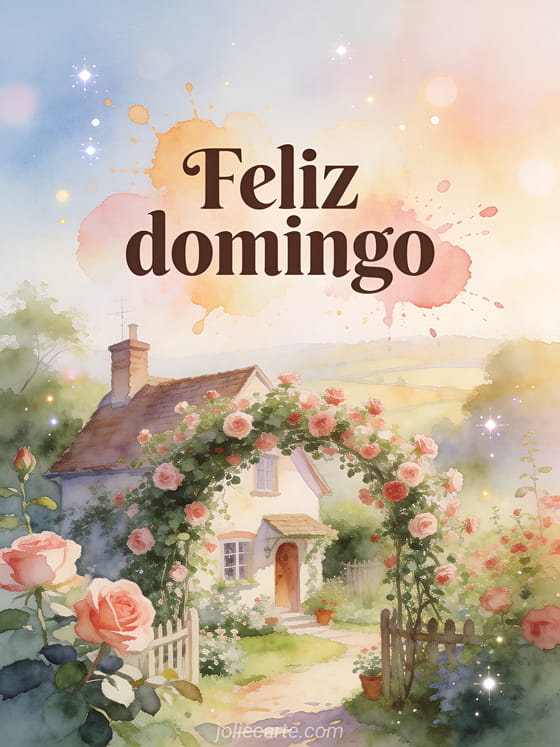 Compartilhe bom dia domingo imagem bonita com um jardim de chalé encantador, rosas trepadeiras e um clima suave de aquarela do campo inglês. Envie mais beleza de domingo com bom domingo muitos beijos gif, feliz domingo paisagem linda ou cor de cabelo outono inverno 2016.