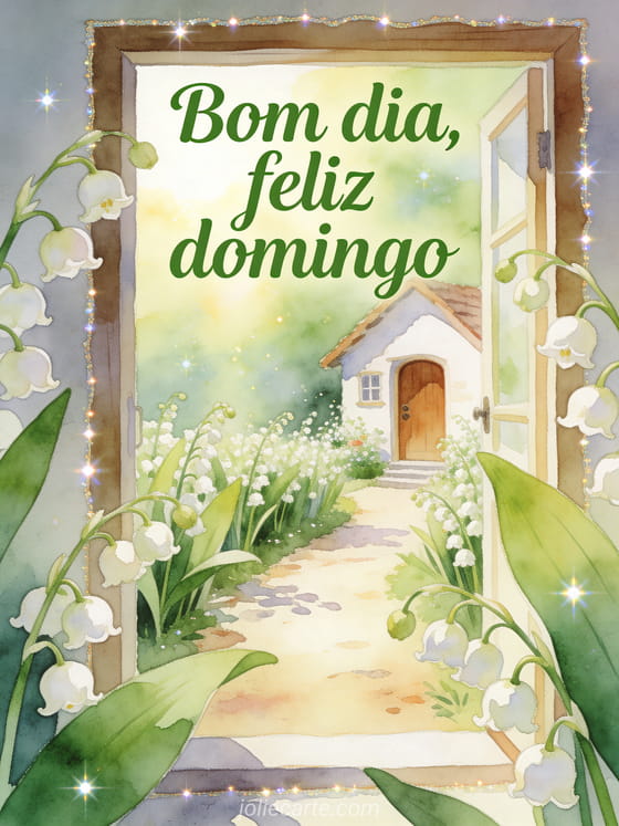 Deseje uma manhã luminosa de domingo com a porta de uma casinha se abrindo para um caminho ladeado por lírios-do-vale e luz fresca do campo. Veja também imagens de domingo muito feliz, bom domingo amigos imagens ou uma feliz domingo buquê de flores imagem.