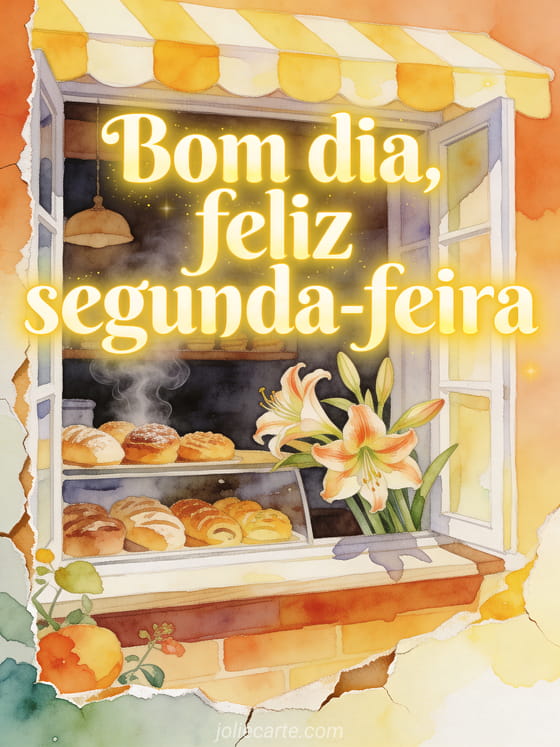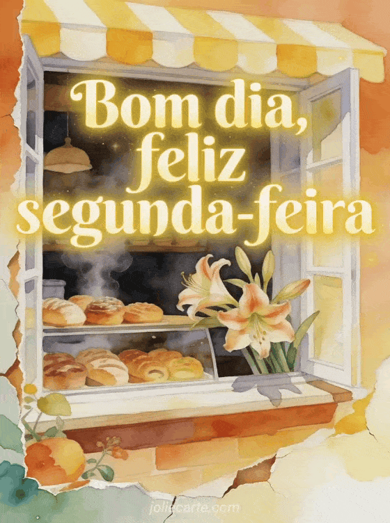 Envie bom dia feliz segunda-feira imagens gif com letras amarelas ensolaradas em aquarela, uma pequena vitrine de confeitaria, doces fumegantes e amarilis inclinados para além da borda. Você também pode gostar deste bom dia feliz segunda-feira gif, destas belas imagens para desejar uma feliz segunda-feira ou deste feliz segunda-feira flores gif.