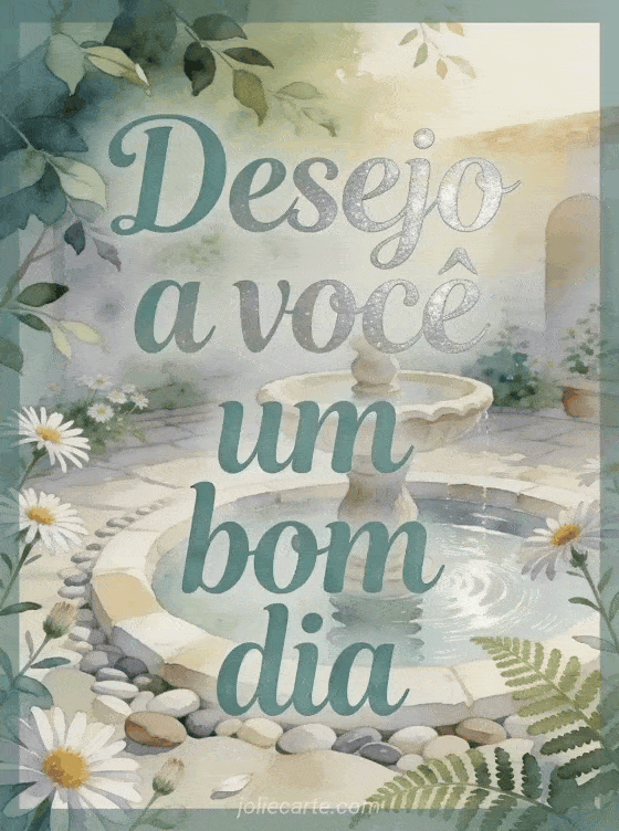 Deseje um bom dia com uma fonte de pedra tranquila, um pátio cheio de folhas, flores de áster, seixos lisos e água ondulante. Veja também um bom dia cachorro gif, gifs de coração bom dia ou tenha um bom dia textos.