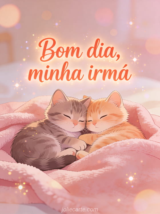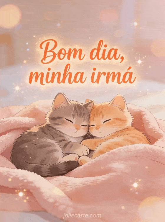 Envie este tocante bom dia irmã ótimo dia com dois gatinhos idênticos abraçados juntos numa terna cena de irmãs. Descubra também um cartão bom dia gato imagem ou um cartão bom dia frase imagem.