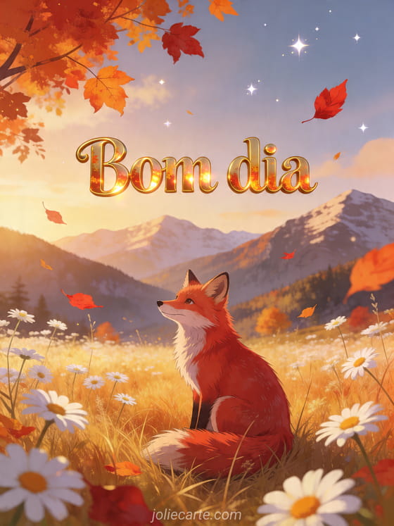 Compartilhe uma linda saudação de bom dia com uma raposa entre gramíneas douradas, flores alpinas e cores quentes do outono. Veja também poema de bom dia emocionante, amizade bom dia mensagem da manhã e olá matinal sms.