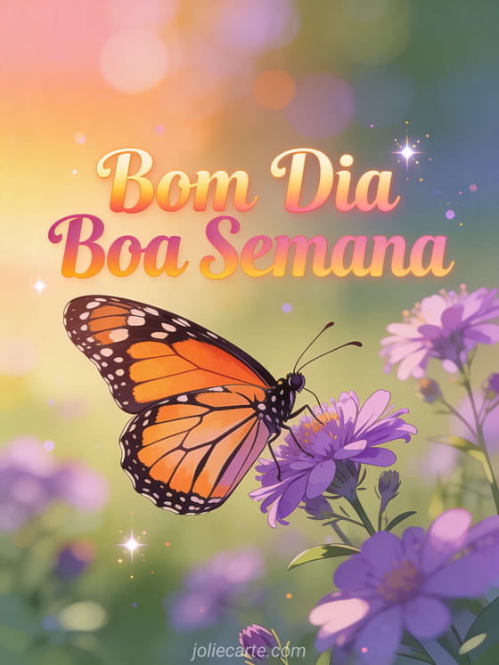 Comece a segunda-feira de alguém com uma bela mensagem de esperança com uma borboleta monarca sobre flores silvestres roxas. Confira também um boa segunda-feira imagens grátis ou um boa segunda-feira boa semana beijos.
