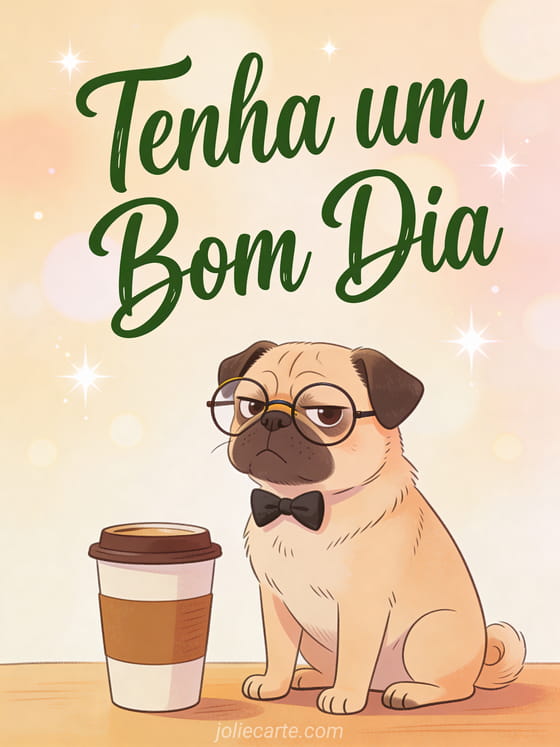 Bom dia tenha um bom dia humor um divertido cartão de bom dia com um pug rabugento mas fofo com mini óculos