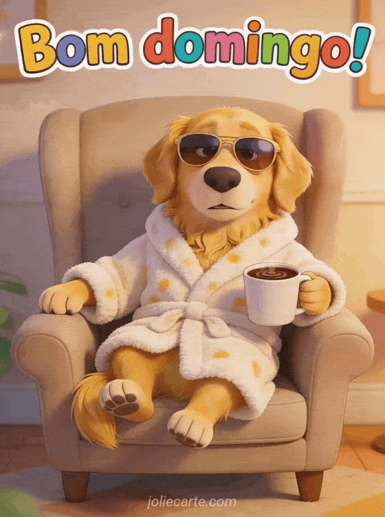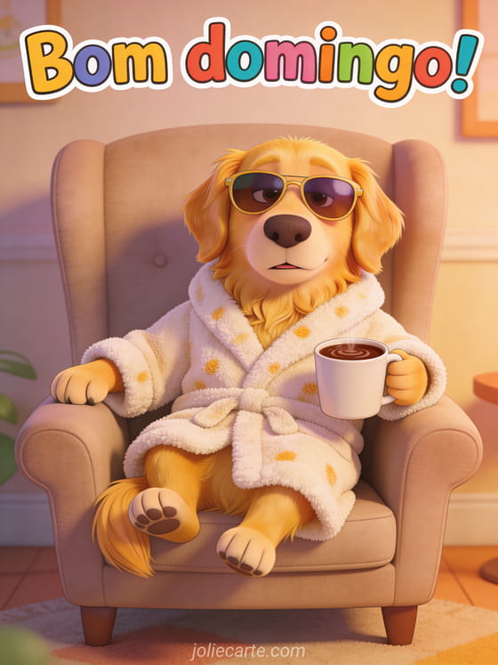 Faça alguém sorrir com este bom domingo divertido com um golden retriever de roupão macio e óculos escuros. Veja também um feliz domingo cartão virtual animado grátis, um feliz domingo beijos humor ou passar um feliz domingo.
