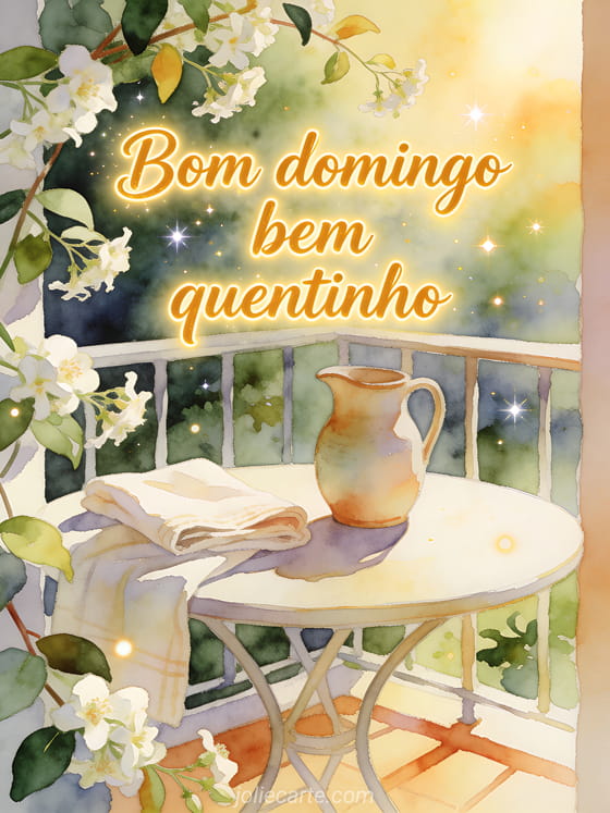 Envie uma imagem de bom domingo quente com letras cor de mel, jasmim e um terraço iluminado pelo sol. Veja também um feliz domingo imagem gif, um texto de feliz domingo ou uma feliz domingo cachorros imagem.