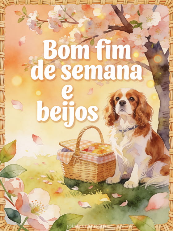 Compartilhe uma saudação terna de fim de semana com este cartão em aquarela cheio de luz quente, pétalas e alegria tranquila. Veja também um bom fim de semana beijos animados, um bom fim de semana beijos foto ou um oi bom fim de semana beijos.