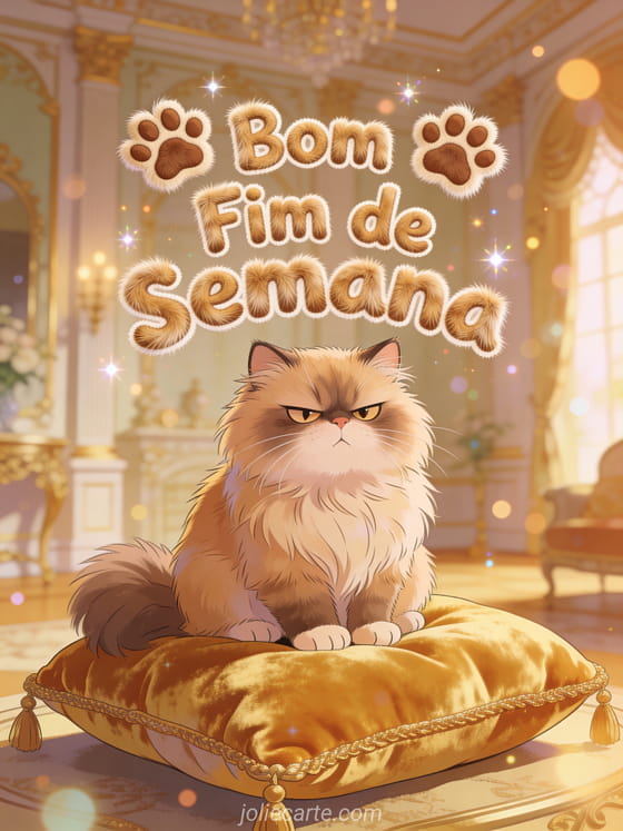 Faça alguém rir neste fim de semana com este engraçado cartão com um gato persa mal-humorado em modo desdém total. Veja também uma imagem bom fim de semana ou bom fim de semana beijos.