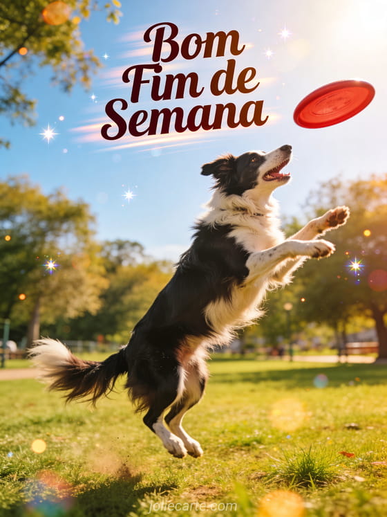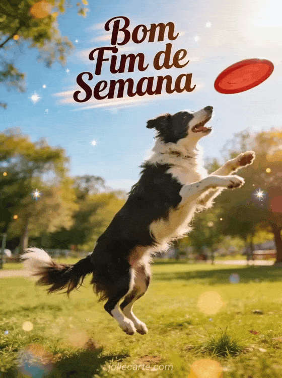 Envie um gif de bom fim de semana cheio de energia e entusiasmo. Um border collie animado pegando um frisbee no ar é o desejo perfeito para o fim de semana. Descubra também um imagens de bom fim de semana ou um cartão bom fim de semana.