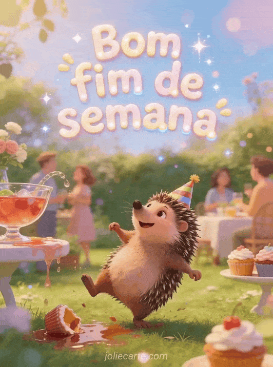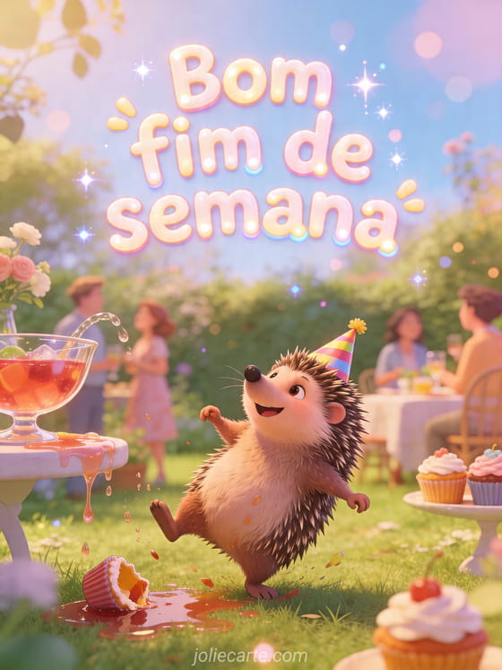 Compartilhe este divertido cartão de bom fim de semana com um ouriço cambaleante, cupcakes e uma festa bagunçada no jardim. Você também pode descobrir bom fim de semana, foto humor bom fim de semana e bom fim de semana ensolarado humor.