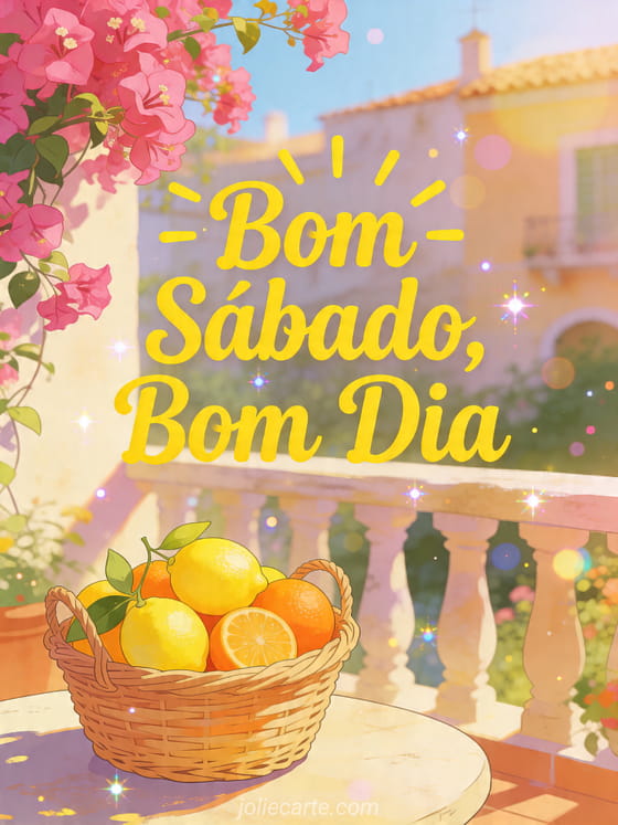Envie um luminoso Bom sábado, bom dia com este cartão grátis cheio de limões, laranjas e sol mediterrâneo. Você também pode descobrir bom sábado belas imagens bom fim de semana, cartão bom sábado grátis ou bom sábado está chovendo.
