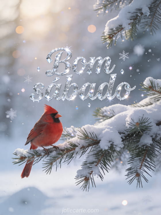 Compartilhe um lindo cartão de Bom sábado com galhos nevados e um cardeal vermelho para um clima aconchegante. Veja também feliz sábado beijos flores, bom sábado café beijos e bom sábado e bom fim de semana.