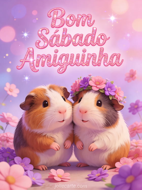 Celebre sua amiguinha neste sábado com esse adorável cartão com dois porquinhos-da-índia compartilhando uma coroa de flores. Descubra também um cartão bom sábado e bom dia ou um cartão bom sábado citação positiva.