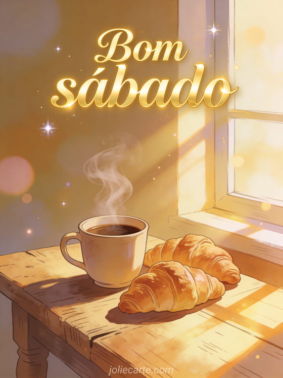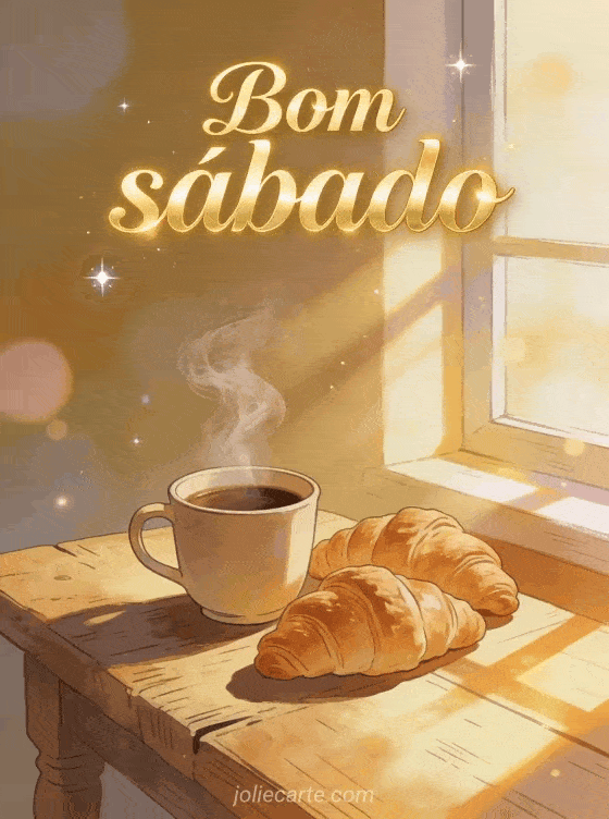 Deseje a alguém um maravilhoso sábado com este cartão caloroso com café fumegante e croissants frescos sob luz dourada da manhã. Descubra também bom sábado coração ou bom dia bom sábado gif.