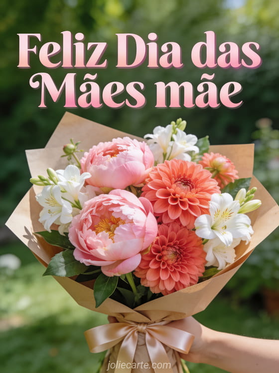Compartilhe este cartão grátis de buquê de flores dia das mães para celebrar com energia floral e carinho. Veja também texto de amor para o dia das mães, pequeno bilhete para o dia das mães e imagem dia das mães para baixar.