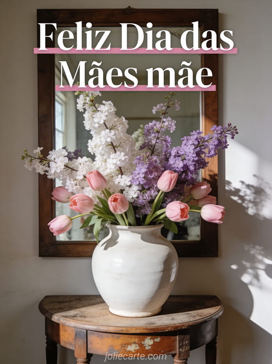 cartão grátis de dia das mães com lilás e tulipas