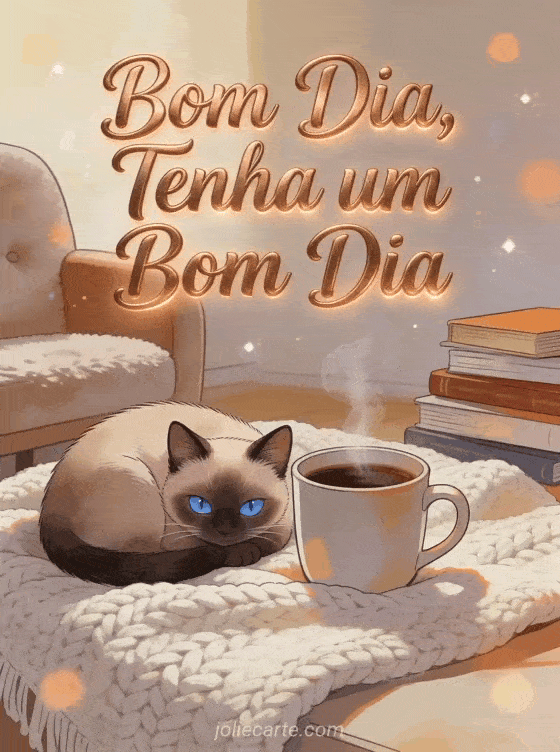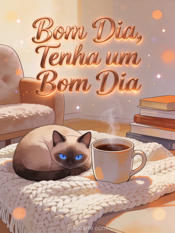 Deseje a alguém um dia maravilhoso com este cartão aconchegante de bom dia com gato siamês e café fumegante. Descubra também um cartão bom dia ao sol ou um cartão humor sol bom dia.