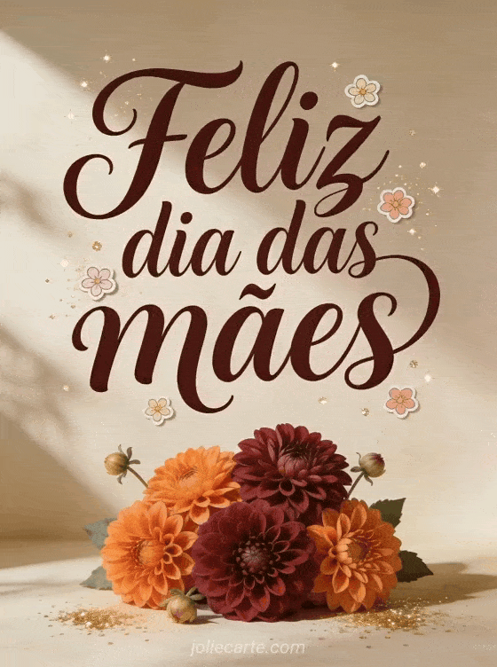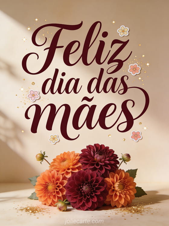 Envie um cartão refinado de Dia das Mães com estilo caligráfico e dálias vibrantes. Você também pode ver poema para o dia das mães, votos do dia das mães para minha filha e poesia para dia das mães.