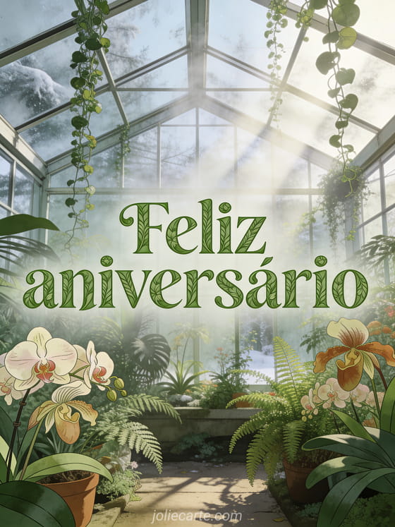 Compartilhe este impressionante cartão animado de aniversário grátis inspirado num exuberante jardim de inverno. Descubra também aniversário flores animadas ou um cartão feliz aniversário animado.