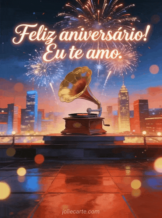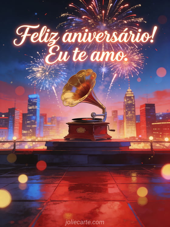 Celebre seu amor com um cartão de feliz aniversário radiante, cheio de letras luminosas, fogos de artifício e luzes alegres da cidade. Personalize em poucos instantes e envie online para deixar esse dia ainda mais especial. Veja também um cartão aniversário meu amor, um feliz aniversário amor da minha vida ou um cartão aniversário casal.
