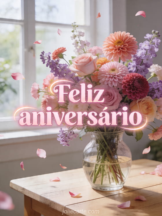 Envie um feliz aniversário radiante com este cartão floral cheio de rosas, dálias, ranúnculos e lilases. Você também pode ver um dromedário cartão aniversário animado grátis musical por sms, uma vela aniversário gif animado ou um feliz aniversário gif animado.