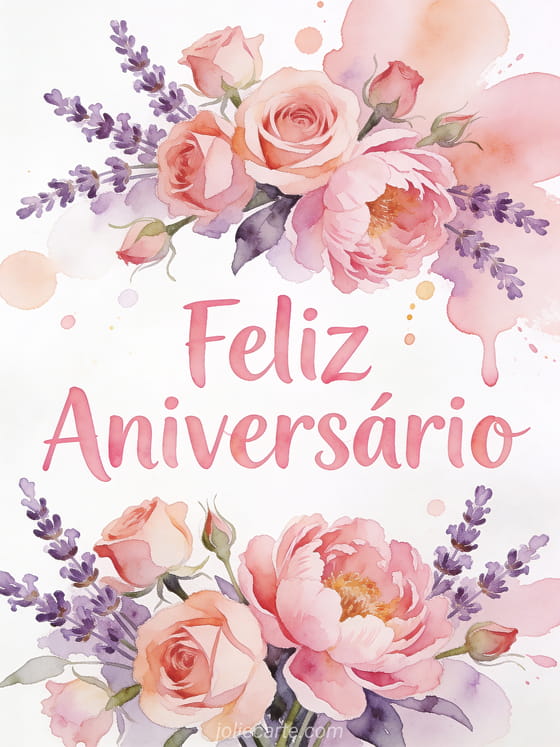 Surpreenda uma mulher especial com este cartão de aniversário pintado em aquarela, com rosas, peônias e lavanda em tons pastel. Descubra também um cartão de aniversário mulher com flores, um cartão de feliz aniversário mulher engraçado ou uma imagem de feliz aniversário mulher com flores.