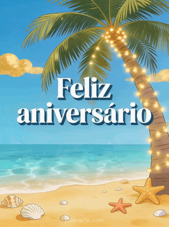 Compartilhe uma mensagem de aniversário ensolarada com este cartão de praia paradisíaca e alegre. Você também pode ver cartões aniversário mulher, imagens feliz aniversário mulher grátis ou glamour feliz aniversário mulher chique.