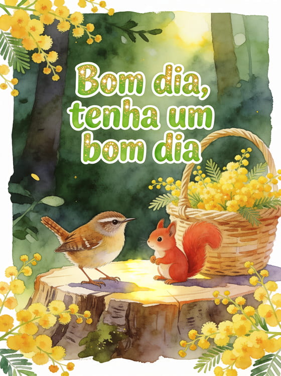 Envie um cartão de bom dia animais com uma cena alegre de floresta, uma pequena corruíra, um esquilo vermelho e mimosa ensolarada para começar bem. Você também pode compartilhar mande um oi, uma mensagem de bom dia para sua esposa ou um sms bom dia amigável.
