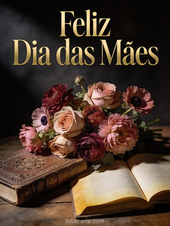 Celebre o Dia das Mães com uma composição floral clássica e elegância atemporal. Você também pode ver dia das mães citação curta, qual mensagem para o dia das mães? e caligrama dia das mães.
