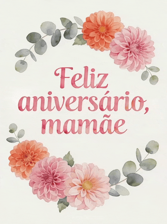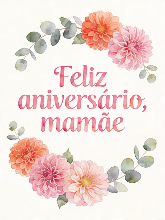 Compartilhe um carinhoso desejo de aniversário para sua mamãe com este elegante cartão floral com dálias rosas e coral e folhas de eucalipto sobre um suave fundo creme. Descubra também mensagem aniversário mamãe, cartão aniversário mamãe e feliz aniversário mamãe.