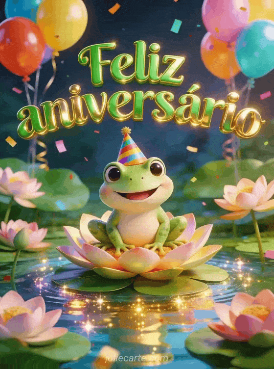 Cartão virtual feliz aniversário sapo grátis