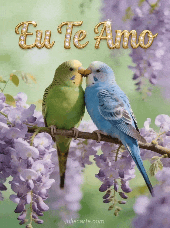 Envie este encantador gif com dois periquitos apaixonados para expressar seu amor. Descubra também um gif eu te amo ou uma imagem eu te amo.