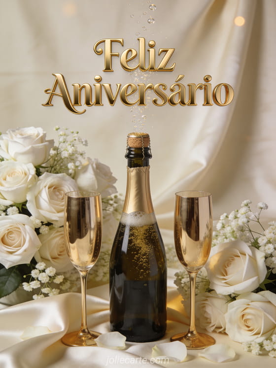 Feliz Aniversário uma elegante celebração de aniversário com champanhe e rosas