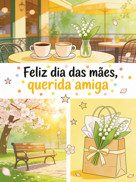 Compartilhe um cartão acolhedor de Dia das Mães para uma amiga especial com um lindo collage de primavera. Você também pode ver desenho para o dia das mães, feliz dia das mães mãe e cartão de felicitações dia das mães grátis.