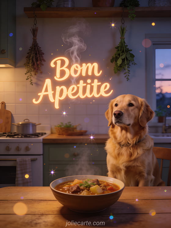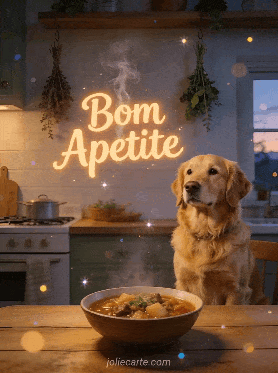 Envie este caloroso desejo de bom apetite e torne cada refeição um momento aconchegante. Descubra também um cartão de bom apetite divertido ou um bom apetite imagens.
