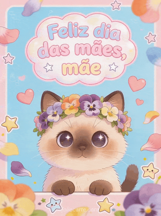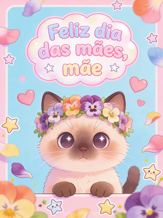 Escolha este cartão kawaii de Dia das Mães para compartilhar um carinho doce e colorido. Veja também carta para o dia das mães, mensagem original feliz dia das mães e cartão de convite dia das mães.