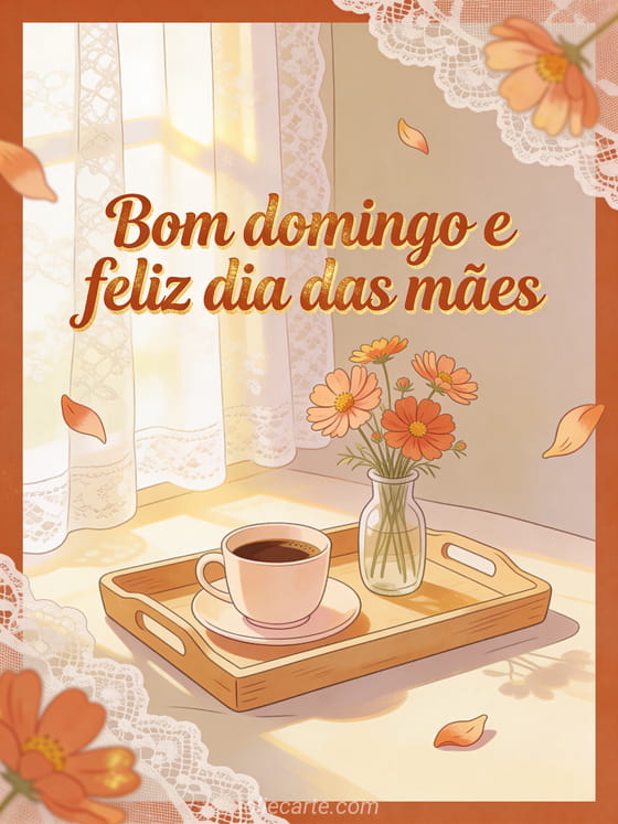 Envie este cartão aconchegante de domingo e Dia das Mães para começar o dia com carinho e calma. Veja também dias da mãe, dia das mães e convite dia das mães.