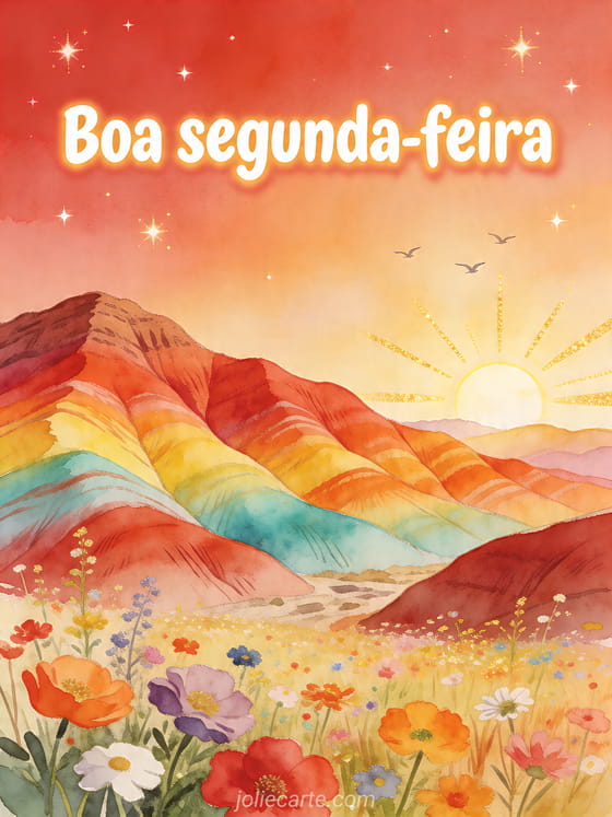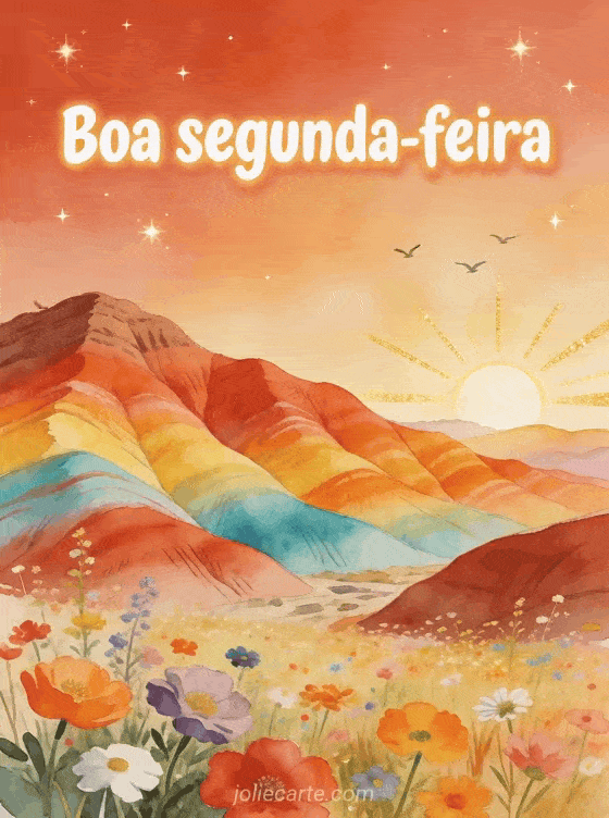 Compartilhe uma radiante Boa segunda-feira com montanhas arco-íris, flores silvestres e luz quente do sol. Veja também cartão boa segunda-feira, bom dia de segunda-feira de manhã e gifs boa segunda-feira animados.