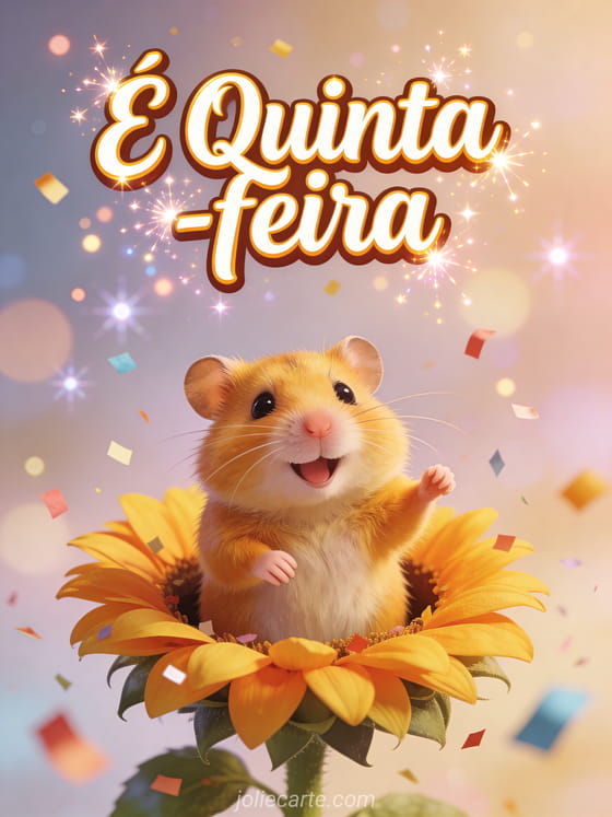 Surpreenda alguém com este alegre anúncio de quinta-feira com hamster. Descubra também um cartão feliz quinta-feira ou um cartão imagens grátis feliz quinta-feira beijos.