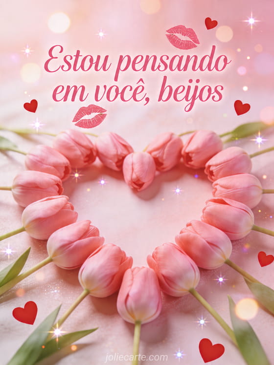 Estou pensando em você, beijos uma mensagem romântica e terna cheia de carinho
