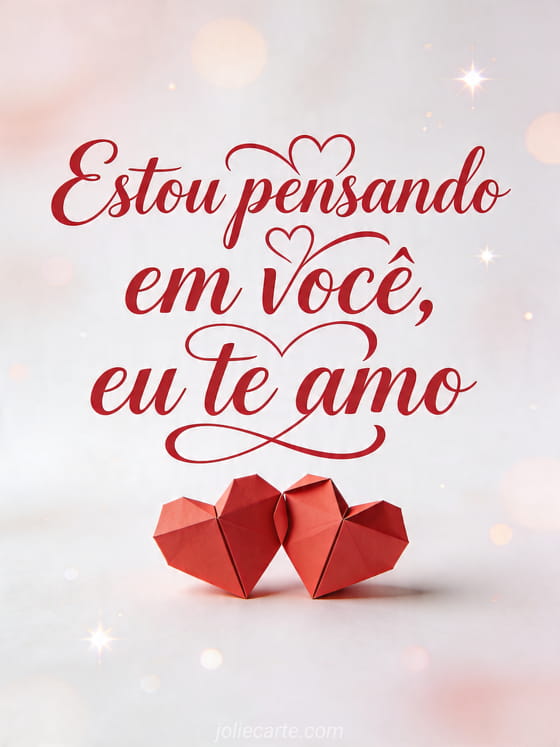 Compartilhe o que você sente com este cartão romântico e seus corações de origami entrelaçados. Veja também estou pensando em você beijos, estou pensando muito em você meu amor ou imagem romântica pensando em você.