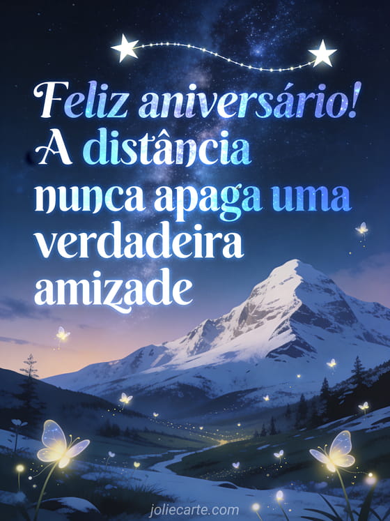 Compartilhe este cartão poético para celebrar uma amizade verdadeira, mesmo longe. Você também pode ver feliz aniversário amigos de infância, cartão feliz aniversário caminhão e feliz aniversário amiga imagem.