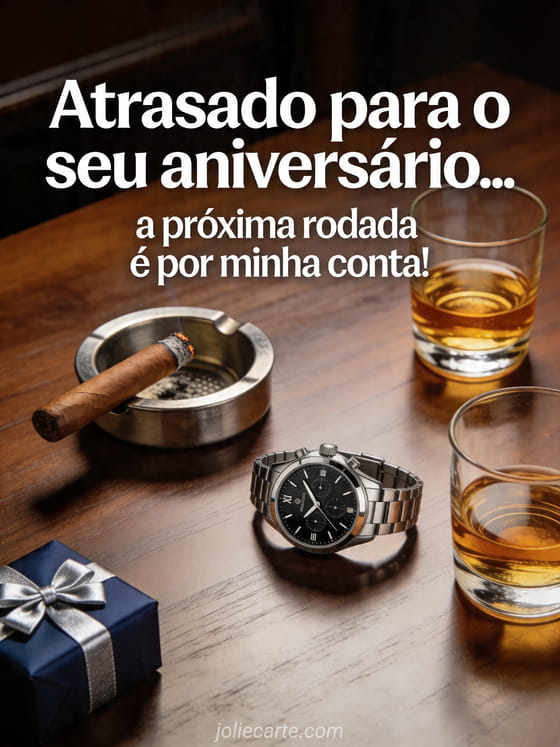 Atrasado para o seu aniversário... a próxima rodada é por minha conta! um feliz aniversário atrasado elegante