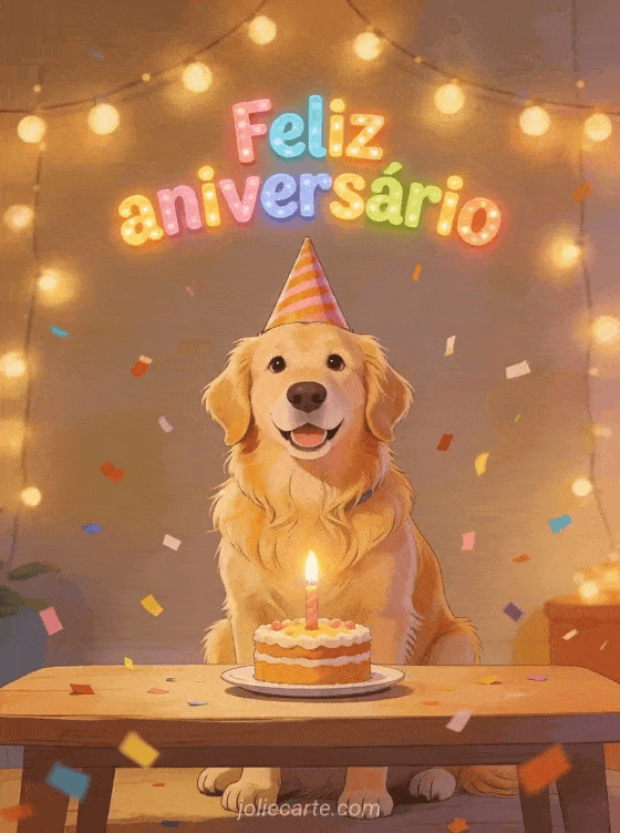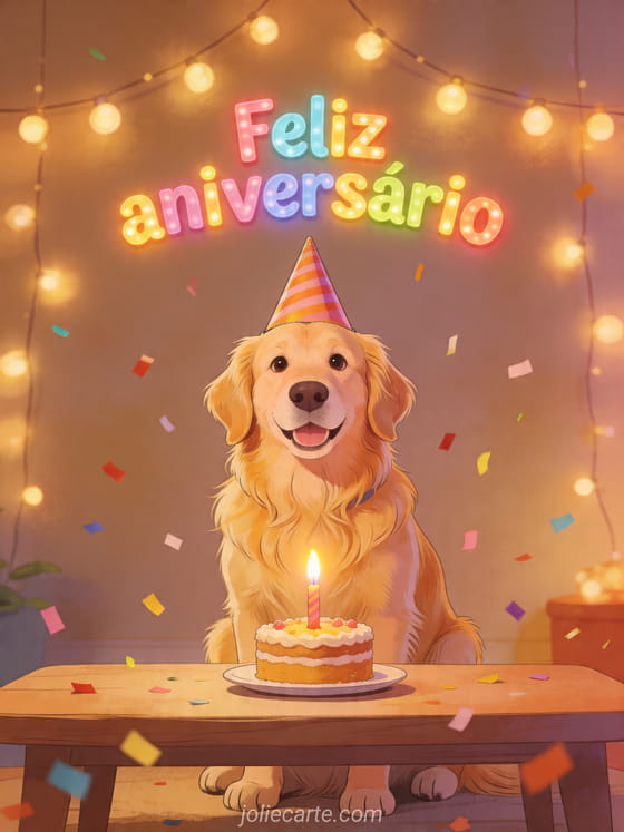 Faça alguém sorrir com este cartão de aniversário festivo e sua ilustração emocionante de golden retriever. Veja também feliz aniversário desenho, feliz aniversário princesa ou frase para desejar feliz aniversário.