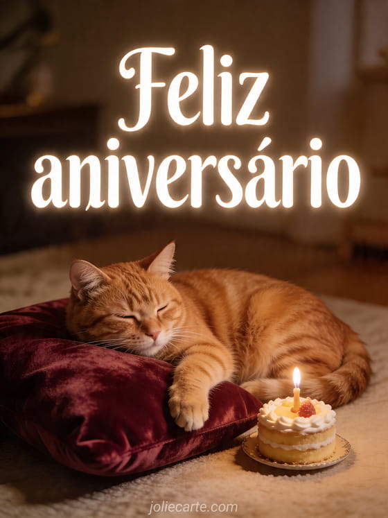 Feliz aniversário uma terna mensagem de aniversário com um elegante gato ruivo