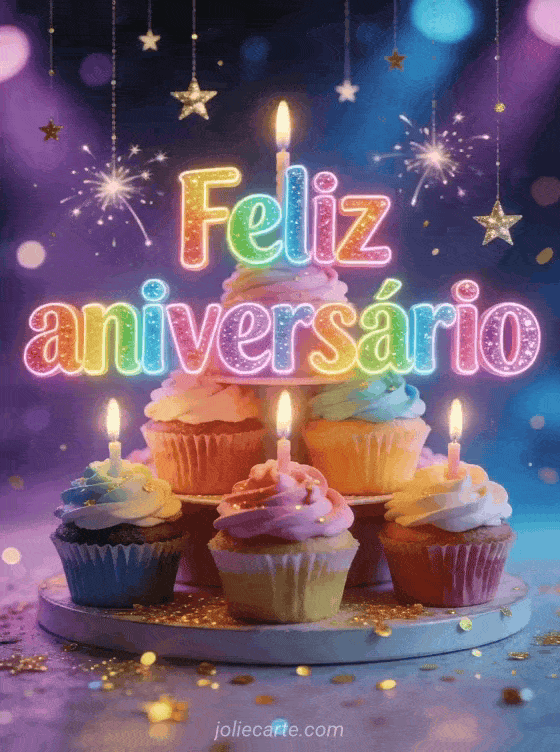 Feliz aniversário uma mensagem de aniversário colorida com cupcakes mágicos