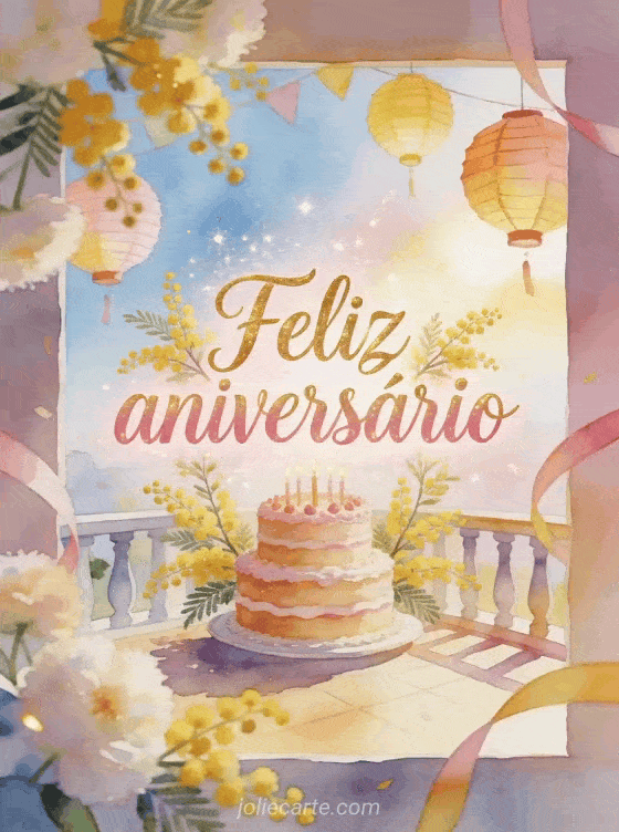Compartilhe feliz aniversário mãe em estilo gifs com ramos de mimosa ao redor de um bolo de aniversário em camadas e lanternas de papel brilhantes em um terraço. Você também pode enviar feliz aniversário minha mãezinha imagem, feliz aniversário mamãe mensagem ou feliz aniversário mamãe eu te amo.