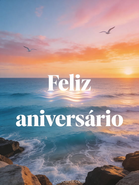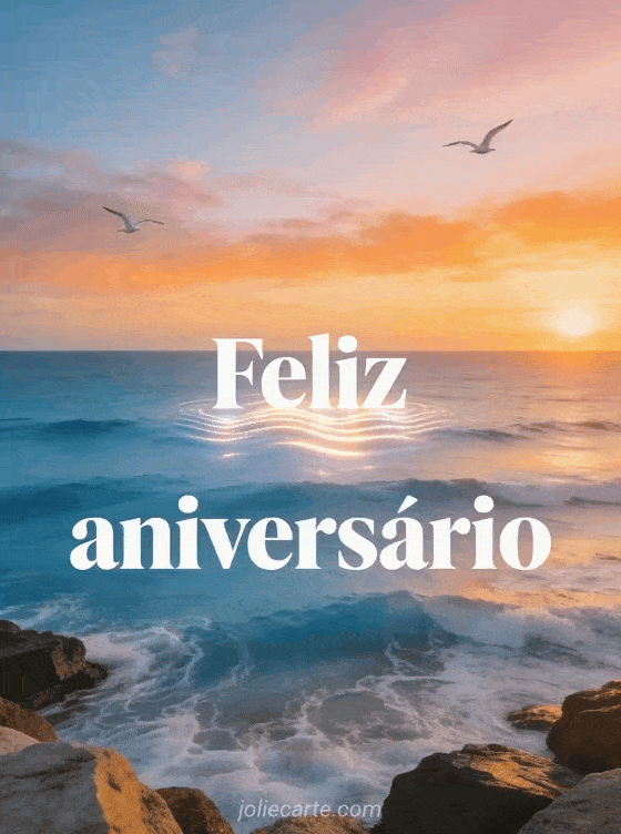 Compartilhe este cartão de aniversário com mar, luz dourada e clima relaxante. Veja também feliz aniversário cavalo, feliz aniversário e gato e desejamos a você um feliz aniversário.