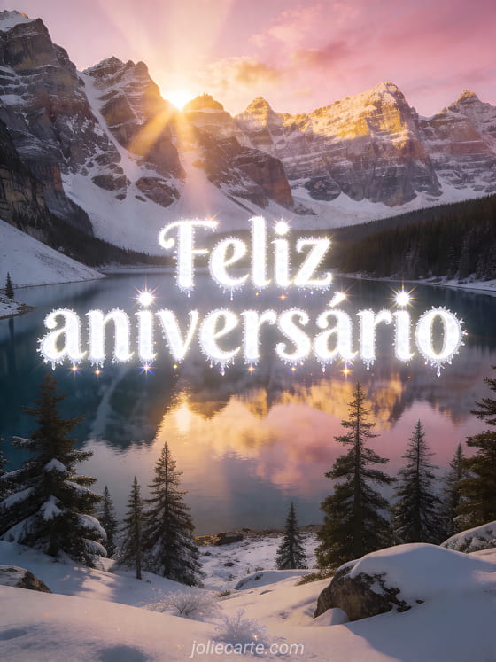 Compartilhe uma mensagem de aniversário calma e luminosa com este grande cartão de montanha ao nascer do sol. Veja também feliz aniversário ou feliz aniversário, feliz aniversário escrita ou desejar feliz aniversário.