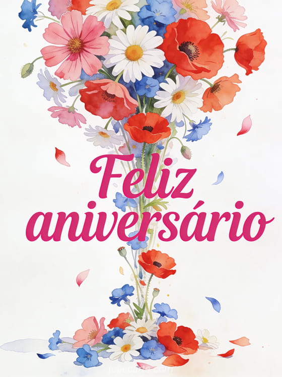 Celebre com um cartão de aniversário vibrante em que cosmos, margaridas e papoulas caem em uma cascata floral festiva. Você também pode ver cartão aniversário mulher champanhe, fotos feliz aniversário mulher e aniversário mulher grátis.